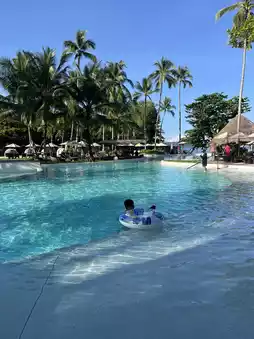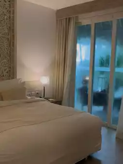 Ambience/Location - A Balinese-style hotel with a peaceful atmosphere. The beach is suitable for swimming. The hotel's swimming pool is beautifully large and beautiful. The white decor is perfect for photography enthusiasts. The rooms are decorated in white tones, blending with the natural thatched roofs, creating a warm and welcoming atmosphere. Breakfast is good. This hotel is ideal for couples, but families can also enjoy a small kids' club.