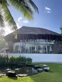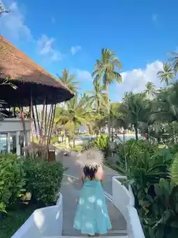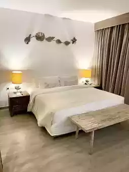 The room was absolutely gorgeous! Clean, beautiful, and with a great view, it felt like a luxurious beach resort. It's not a very long walk from the lobby to your room, but a golf cart will take you there. There are several room types to choose from, but we chose the Superior Palm View room. It's located in a building, and the room is spacious and well-equipped. They even lend you hats and woven bags for photo props. The day we visited, the rain had just stopped, and the weather was beautiful. However, the water wasn't very pleasant, with strong waves. There were red flags posted, so swimming in front of the beach wasn't a pleasant experience. The hotel's spacious grounds meant walking to breakfast or the beach was a bit far. The pool was beautiful, perfect for taking photos from every angle. There's also a restaurant and cafe on site. For those who don't feel like going out, this hotel offers a one-stop service.