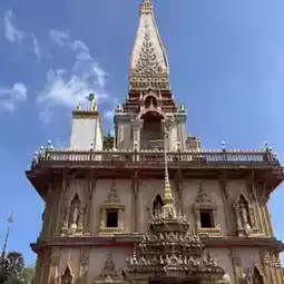 Wat Chalong, Address: Chao Fah Tawan Tok Rd, Chalong, Mueang Phuket District, Phuket 83000 Thailand, built in 1837, majestic architecture, peaceful atmosphere, many people come to visit, beautiful place, free admission, there are stalls around to buy souvenirs.
