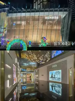 Icon Siam introduces Bangkok to duplex stores like Hermès, H&M, and COS, as well as the first Apple retail store and Siam Takashimaya department store. It even brings a traditional floating market indoors, offering a blend of shopping and tourism experiences. The mall's interior is spacious, with several high atriums and some areas exceeding ten meters in height, enabling the display of large art and commercial installations and multi-level storefront designs.