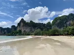📍 Krabi: Cliffs covered in greenery rise majestically. Hidden caves in Phang Nga Bay await discovery, while kayaks glide across emerald waters, startling flocks of seagulls into flight.