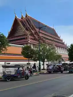 Wat Arun, located along the Chao Phraya River in Bangkok, is a stunning temple that showcases Thailand's traditional architectural style. The approximately 70-meter-high pagoda is adorned with intricate ceramic decorations, and its shimmering appearance under the sunlight is truly captivating. Visiting in the calm of the morning brings a sense of tranquility, while the silhouette reflected on the river at sunset creates a magical scene. It's a must-see spot for tourists, offering a chance to leisurely explore while soaking in the history and culture.
