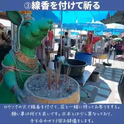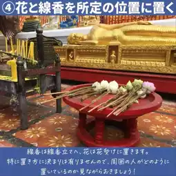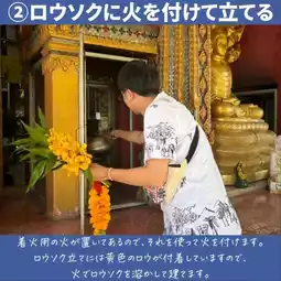 As for incense, unlike in Japan, you hold the incense while praying, so make sure not to place it in the incense holder beforehand! Additionally, while simply clasping your hands together is sufficient, bowing three times will make your prayer style more authentically Thai.