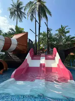 This viral hotel lives up to the hype! We stayed in a sea-view room on the 3rd floor of the Thani Wing, where the balcony opens up to coconut trees and turquoise waters—pure bliss! The room is a bit dated but the bed is super comfy and not damp at all. The highlight? The pool areas! Two zones with slides kept the kids entertained until they were completely worn out. Plus, the free kids' club lets you have an hour to yourself. And the breakfast? Unbeatable! Semi-outdoor seating with ocean views, freshly made burgers, and a chocolate fountain. Picture your child twirling with cotton candy under the sun—every moment feels like a scene from a heartwarming movie.