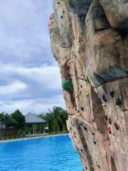 5️⃣ The water climbing wall tests your arm strength, and the top diving platform can overlook the entire park