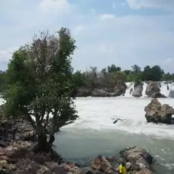 Khone Phapheng Waterfall is one of the largest and most famous waterfalls in the Indochina region. The waterfall has multiple tiers and is located on a large rocky outcrop that blocks the flow of the entire Mekong River. It features various levels with a height of approximately 10 meters. The waterfall receives water from the lower Mekong River and has a height of 21 meters. Khone Phapheng Waterfall is often referred to as the 'Niagara of Asia.' It is located in Champasak Province, Laos, about 150 kilometers from Pakse. It is one of the most renowned and beautiful tourist attractions in Laos.