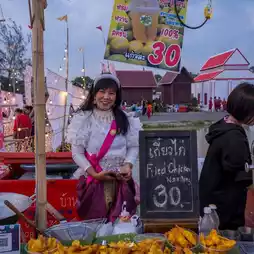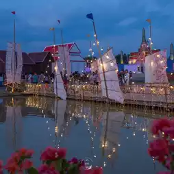 Today is the first day of the event. Come wear a retro Thai costume and walk around the event. There are costumes for rent at the event. There are also food stalls and spectacular stage performances. The atmosphere is like going back in time.