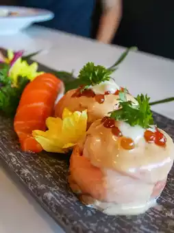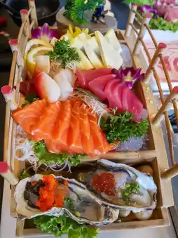 ❇️ There are 🥓 Kurobuta pork, salmon, 🍣 various sushi, and the meat will be premium grade. 🥩Wagyu beef, AUS sirloin, Matsusaka beef, Wagyu blade steak, Wagyu ribeye, and many other menus of the shop to choose from, such as grilled eel, Hokkaido scallops, foie gras, uni (sea urchin eggs), snow crab shells 🦀