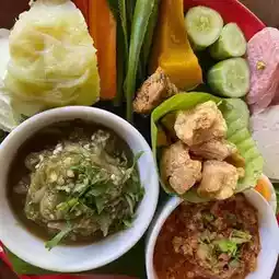 We like this place because it's authentic northern food. The famous Nam Prik Num is a shady atmosphere, like being in a garden. There are many dishes to choose from, suitable for bringing your family to eat. You can come with friends or alone. We recommend these two menus. For those who like a set: