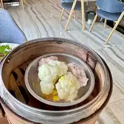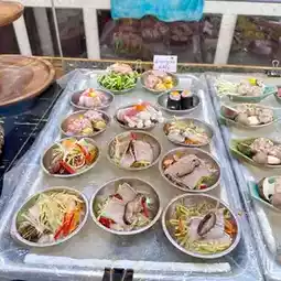 While you're going to refuel, stop by to try the dim sum and bak kut teh, some kind of boiled chicken, I can't remember what it is, but it's delicious. The chicken is soft and has all the seasonings. The dim sum is freshly steamed, hot, and very delicious. You can choose it yourself.