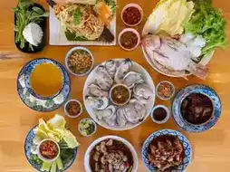 What Nuch loves the most is the large oysters, full of side dishes, and served with a very spicy sauce.