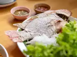 - Large grilled fish, wrapped in vegetables, and served with a very delicious sauce.