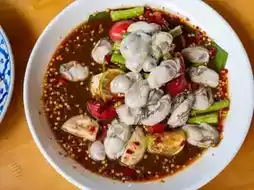 - Mini oyster salad, oh my, this dish is very spicy, full of oysters.