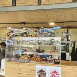 🌤️The shop is located on the old airport road. It is a car park service point. It is a small shop on the 2nd floor with not many seats. The interior of the shop is decorated with pictures and airplane models.