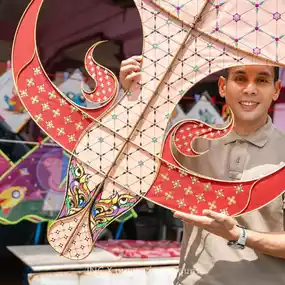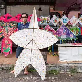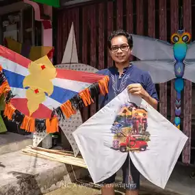 Phi Got โ Worapot Rattanakay from Village 8, Srisunthon Subdistrict, Thalang District, Phuket Province grew up with the sound of paper flying and the wind blowing kites in the sky. He was inspired by his grandfather who has been making and selling kites since the previous generation.