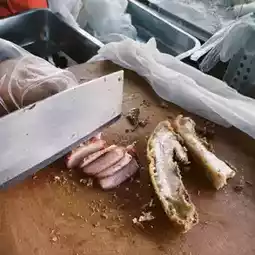 Smoked pork with a charcoal stove, cut into bite-sized pieces