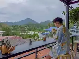 Two Moons Cafe' is a small, cute cafe that just opened not long ago. The atmosphere is airy and comfortable. The shop has 2 floors. The ground floor is divided into indoor and outdoor zones. There is a koi fish water park to choose from. The upper zone is trees. There is a corner to sit. The wind is cool. You can see the natural view of the green mountains. So cool.