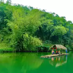 Pu Luong (Thanh Hoa) – the land known as “miniature Sa Pa” – is an ideal destination for tourists who love nature and want to explore ethnic identity. One of the popular experiences here is sitting on a bamboo raft drifting gently on Cham stream, winding through old forests and peaceful villages.