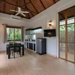 Each villa is designed for privacy, with a bedroom, living room, small kitchen, and private pool. Perfect for couples, families, or groups of friends.