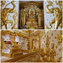 🏛️ The chedi is rectangular in shape, similar to Phra That Phanom. The top contains the relics of the Lord Buddha. You can also walk around the hall below, which is surrounded by beautiful golden Buddha statues.