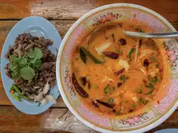 Must-try dishes include the roasted pork larb—fragrant with roasted rice, rich in spices, and a satisfyingly spicy kick. The spicy and sour soup with cartilage is a rich and satisfying soup, with a hint of sourness and a hint of spiciness. 🥄 The spicy papaya salad with fermented fish is a delightful and not-too-overpowering fermented fish sauce. The grilled pork neck with jaew sauce offers crispy skin and firm meat, perfect for dipping in the hot jaew sauce.