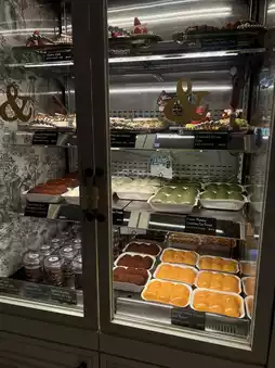 A popular café among Chinese foodies, offering a wide variety of desserts. Whether you're into chocolate, cheese, fruits, or tarts, there's something for everyone here. If you're feeling low on sugar, this is the place to be! The prices are reasonable, the portions are large, and the flavors are excellent. The café is always bustling with people. I got two chocolate desserts, and just one piece was enough to fill me up—it’s big and worth the price. There’s seating available for dining and taking photos, and it seems like 90% of the people in the area are carrying bags of goodies from this café.