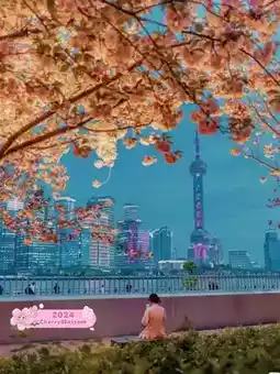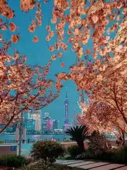 🌸 This weekend is the perfect time to enjoy the flowers. Adjust the blue tone before and after sunset, admire the lights of the skyscrapers, the deep blue night sky, and the pink cherry blossoms dancing in the night breeze. Find a cozy spot by the path, sit back, and savor the enchanting moments of spring. The cherry blossom forest lights up around 17:30, Lujiazui lights up around midnight, and the sunset is around 18:30. 🌸