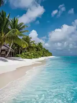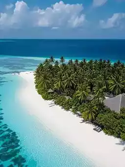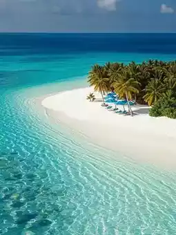 Upon arriving at Thoddoo Island, the sun shone down unrestrainedly. The white sandy beach, like fine powder, gently stretched out before my eyes. The seawater displayed distinct layers of blue, from light to deep, like a palette overturned by nature, dreamlike and beautiful.