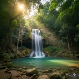 This waterfall, nestled deep in the forest, offers a tranquil and shady atmosphere. The crystal-clear, cool water is perfect for relaxing and listening to the sounds of nature.
