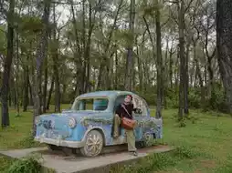 Another popular check-in spot in Hue City is the old amusement park that has been abandoned for a long time. The dragon statue at the Thuy Tien Lake amusement park stands 20 meters tall and is about 50 meters long, surrounding a water pavilion. Tourists often stop to take photos from the floating bridge leading to the dragon statue and enjoy the view from the dragon's mouth. When we visited, many foreigners liked to climb up and take photos from the top of the dragon's head. The atmosphere is eerie and scary, so it's recommended to visit before it gets dark to get beautiful photos. Motorcycles can also drive close to the giant dragon statue.