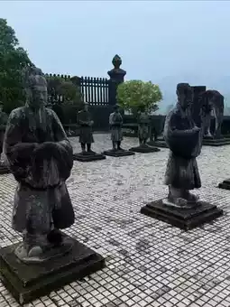 Inside, visitors can marvel at the elaborate interior adorned with intricate mosaics, colorful ceramics, and detailed statues that showcase the artistry and craftsmanship of the early 20th century. The steps leading up to the tomb, flanked by grand statues, add a sense of anticipation and grandeur to the visit. Unlike other imperial tombs in the area, Khai Dinh’s mausoleum stands out for its fusion of styles, making it a unique cultural and historical landmark. Exploring the tomb provides an engaging glimpse into Vietnam’s imperial past and the creativity behind its royal monuments.