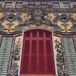 The inner palace is painted in mustard yellow, contrasting with the red of the windows. The beauty is enhanced by ceramic tiles arranged in various patterns. Be amazed by the craftsmanship.
