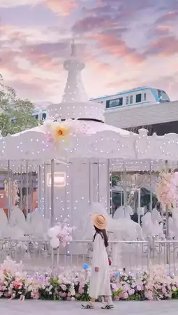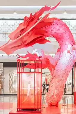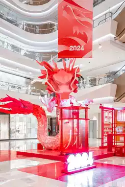Although I am in Wuhan, it is the first time I have seen the rose waterfall that covers the entire elevator and the pink dragon. It feels very avant-garde and very photogenic