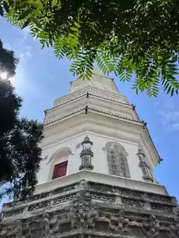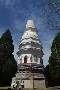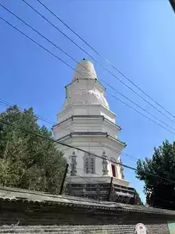 🛕The most valuable part of the White Pagoda Temple is the White Pagoda in the backyard. The year of its construction is unknown. It was rebuilt in 1058 and repaired in the Ming and Qing Dynasties. The pagoda is 30.6 meters high and has an octagonal shape. The four main sides have brick-carved false doors (the south door has a Buddha niche carved in the Ming Dynasty), with a pair of flying apsaras on the top, which are lifelike. The four side faces are square seats with round heads and relief inscriptions. The Buddha statue is carved in the middle of the inscription, and the inscription is engraved on the body.