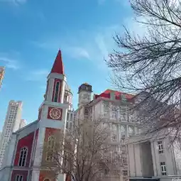 Walk along the back of the pedestrian street, you will see a glass bridge. Keep walking and you will see Jiefang Bridge / Century Clock Tower / Opposite Jiefang Bridge, there is a European-style building, a beautiful street to take photos.