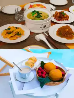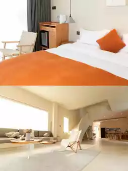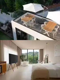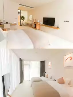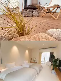 The resort's architecture blends perfectly with the natural environment, with every brick, tile, plant, and tree exuding a sense of tranquility and timelessness. The rooms are simply and elegantly decorated, with plenty of natural light making the space bright and cozy. The floor-to-ceiling windows offer panoramic views of the mountains and rivers outside, with lush forests and stunning sunsets becoming the most beautiful decorations in the room.