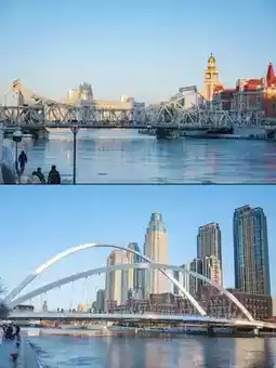 From Beian Bridge to Liberation Bridge, passing through Dagu Bridge, the distance is about 1.5 kilometers. From sunset to dusk, you won't feel tired but will be amazed by the scenery. The scenery on both sides of the Haihe River is like a painting, with European and modern styles alternating.