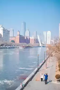 Besides the beautiful scenery, I think the Haihe River is also an integral part of Tianjin people's lives: an old man writing calligraphy with water by Jintang Bridge, uncles and aunts singing and dancing under Beian Bridge, a dog running on the frozen river next to Dagu Bridge, a family of three taking photos under Daguangming Bridge...