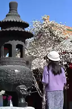 2️⃣Stand in front of the incense burner and take photos with the magnolia tree in the distance.