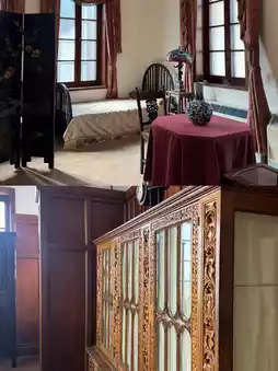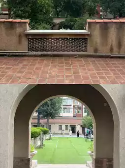 Jingyuan Garden is nestled in what was once the Japanese Concession, and true to its name, it sits in a quiet, ordinary alley. The standard Western-style architecture carries a hint of the Republican era. The main building of Jingyuan Garden embraces an eclectic style, incorporating elements of Japanese wooden architecture and Spanish architectural features. The structure and materials of the gate display typical Japanese characteristics, simple, natural, and minimalist. However, its gently sloping roof, the use of cylindrical tiles, and the interior detailing clearly reflect the style of Spanish medieval architecture.