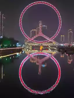 At 18:30, after enough rest, we started to continue Citywalk along the Haihe River scenic line in front of the hotel, playing and eating while walking (there was a pancake stall), and arrived at the Tianjin Eye Ferris Wheel at 20:00.
