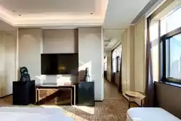 I spent three nights and four days in an executive suite. The room's design features sleek lines and high-gloss finishes, creating a refined atmosphere. The room's hardware is outstanding, with standard features including a capsule coffee machine, smart toilet, automatic curtains, and a gray, wireless-charging JBL Bluetooth speaker.