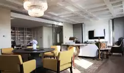 The "Chapter" lobby lounge at Conrad Tianjin is arguably the most spacious and expansive among Tianjin's hotels. Its modern, elegant, and luxurious design features floor-to-ceiling windows that allow natural light to flood the interior, while several crystal chandeliers overhead add a touch of sparkle and grace.