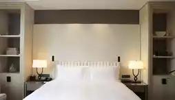 The minibar is a hidden gem, tucked away in a cabinet and stocked with a wide variety of soft drinks, alcoholic beverages, snacks, and custom glassware, including wine glasses, water glasses, and beer mugs. The check-in amenities maintain the standards of a luxury hotel, with a fruit plate, fresh flowers, and a welcome card, all thoughtfully provided. The turndown service includes the signature Conrad teddy bear, along with a red bathrobe laid out on the bed.
