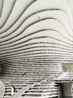The Tianjin Binhai New Area Library is not an exaggeration to be called the ‘most beautiful library in the world’. When you step inside, the white bookshelves flowing in a curved manner wrap around the walls and ceiling, giving the impression of being in a giant wave of books.