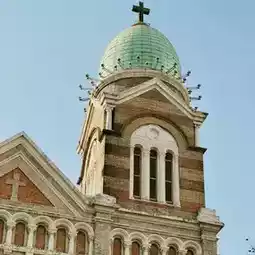 Xikai Church (officially **St. Joseph's Cathedral**), built in 1913, is Tianjin’s largest Roman Catholic church and a key religious site in North China. Its striking **Romanesque-Byzantine architecture** features red-brick walls, three green copper domes, and twin bell towers (57m high). Inside, colorful stained glass, frescoes, and marble columns create a solemn atmosphere.