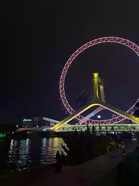 • 🌆 Modern skylines, Ferris wheel on a bridge (Tianjin Eye, no joke)
