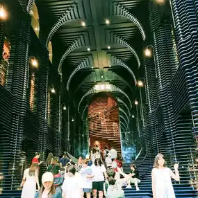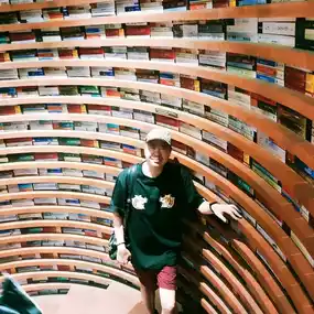 Tourists, local and international alike, will visit this beautiful library to snap away at the blue hued stairs and sideways before ascending onto the spiral staircase where everyone will crowd around to get various shots on, around , in front and up the spiraling staircase !  The ceiling infrastructure is also fantastic  !