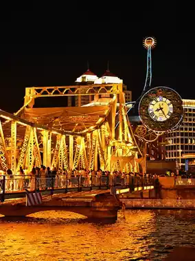 At dusk, watch the Haihe River light show from Beian Bridge, then take photos at Jinwan Square, Jiefang Bridge, and the Century Clock 📷, the lights on both sides of the Haihe River are stunning enough to scream!