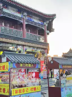 One of the most charming areas of Tianjin is the ancient cultural street, “古文化街,” lined with traditional Chinese buildings in bright red, intricately patterned, and rows of red lanterns hanging overhead. 🏮